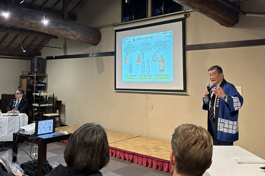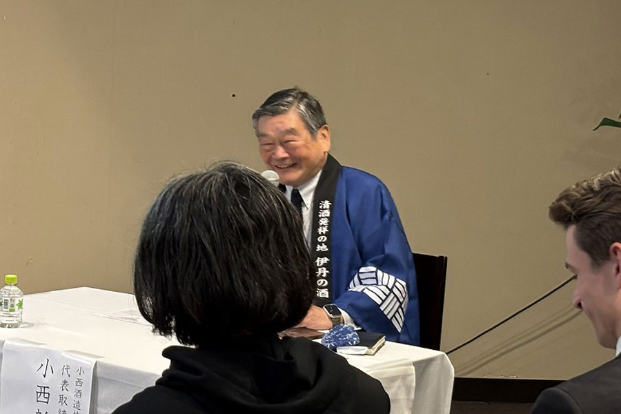 第二部では伊丹市役所の中畔明日香氏に進行いただき「無形文化財」や「民俗文化財」をテーマに大江先生、小西酒造㈱代表取締役社長小西新右衛門が対談しました。最後にご用意したお酒をご試飲いただき、皆さん各々に楽しんでいらっしゃいました。