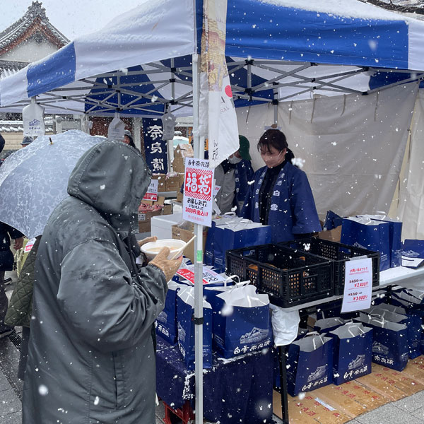粉雪が舞い、寒冷の中、延べ1万人のお客さまにご来場いただき誠にありがとうございました。雪の舞う中での開催となり、至らぬ点も多々あったかと存じますが、皆様の温かなご厚意に支えられ、無事に終えることができました。スタッフ一同、感謝申し上げます。