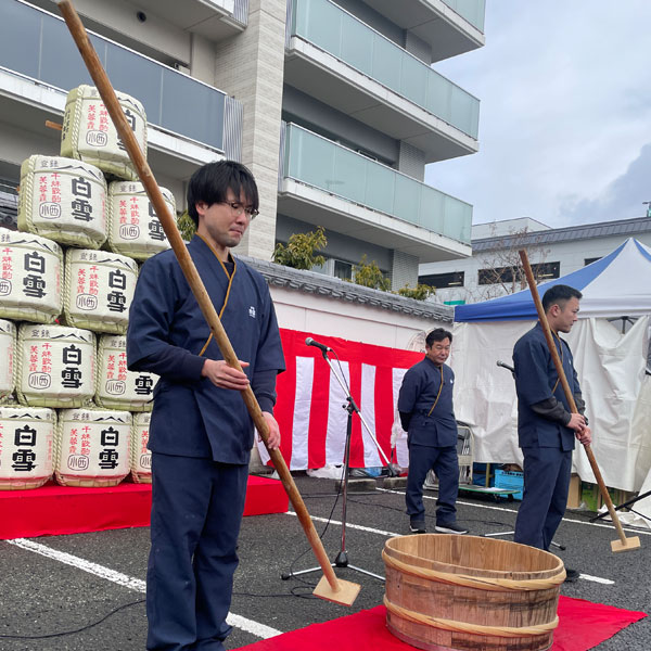 早朝より多くのお客さまにお集まりいただき、振舞酒を心待ちにされる熱気とともに、賑やかな幕開けとなりました。